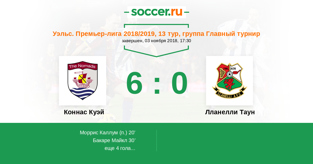 Протокол матча Коннас Куэй против Лланелли Таун