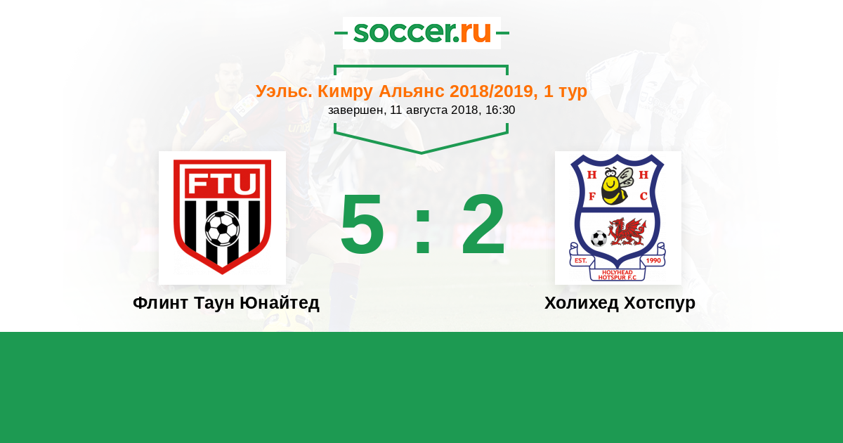 История матча Флинт Таун Юнайтед против Холихед Хотспур