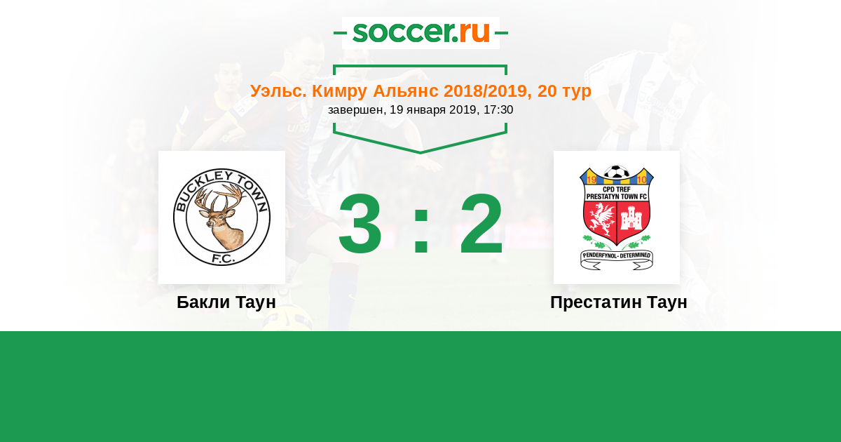 Уэльс. Кимру Альянс 18.01.2020 Бакли Таун Логотип футбольный клуб Бакли Таун 0:5 Логотип футбольный клуб Престатин Таун Престатин Таун