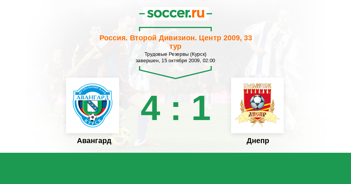 Россия. Вторая лига. Группа 3 21.07.2009 Днепр Логотип футбольный клуб Днепр (Смоленск) 0:1 Логотип футбольный клуб Авангард (Курск) Авангард