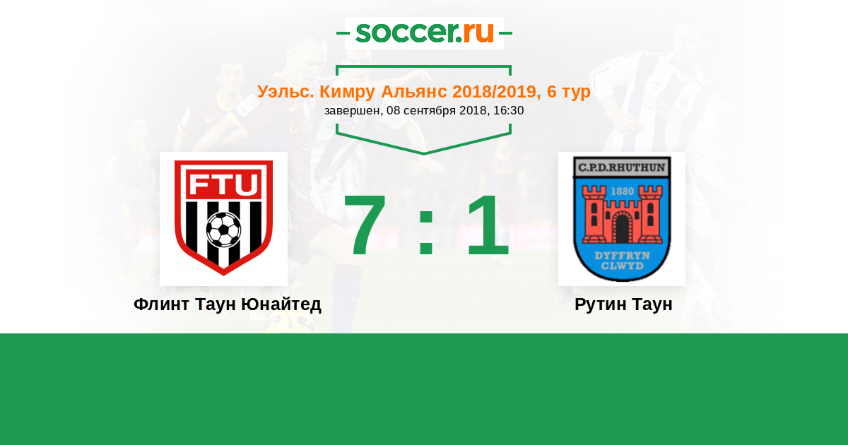 Уэльс. Кимру Альянс 12.11.2007 Флинт Таун Юнайтед Логотип футбольный клуб Флинт Таун Юнайтед 5:1 Логотип футбольный клуб Рутин Таун Рутин Таун
