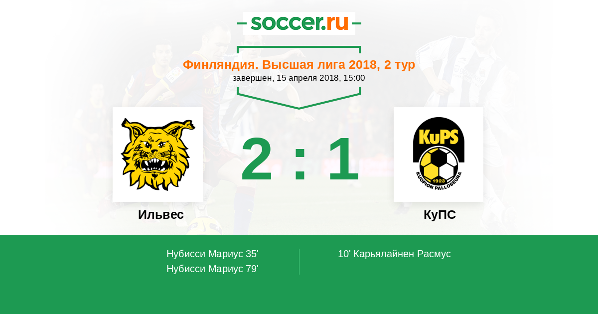Протокол матча Ильвес против КуПС