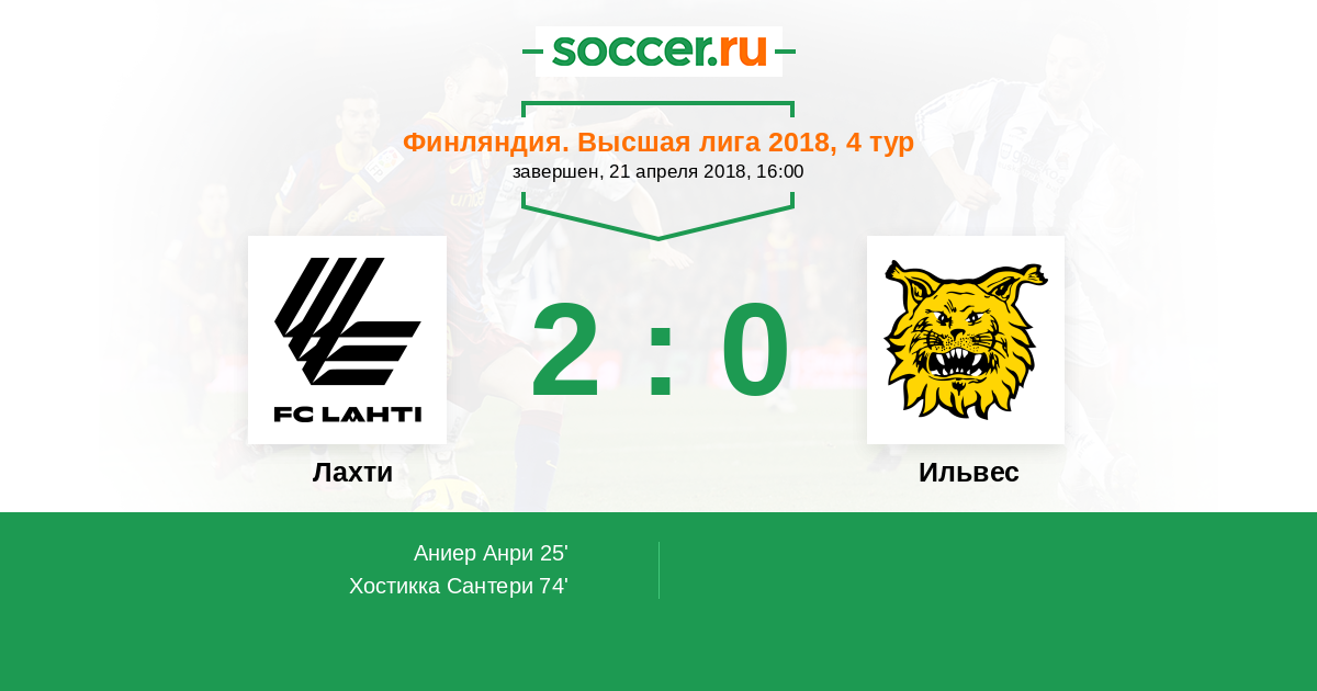 Протокол матча Лахти против Ильвес