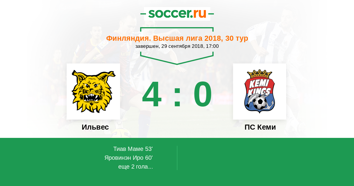 Протокол матча Ильвес против ПС Кеми
