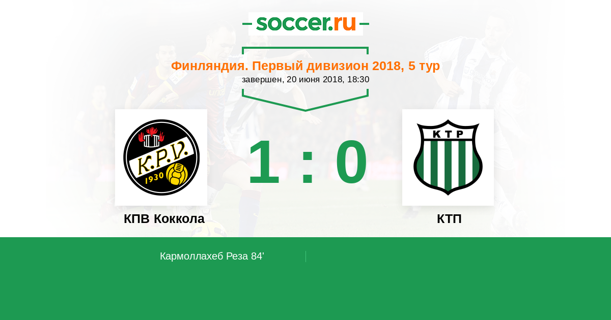 Протокол матча КПВ Коккола против КТП