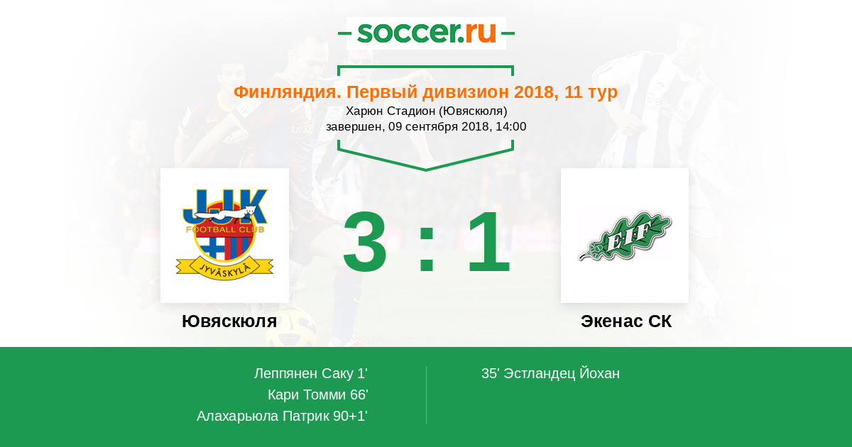 Протокол матча Ювяскюля против Экенас СК