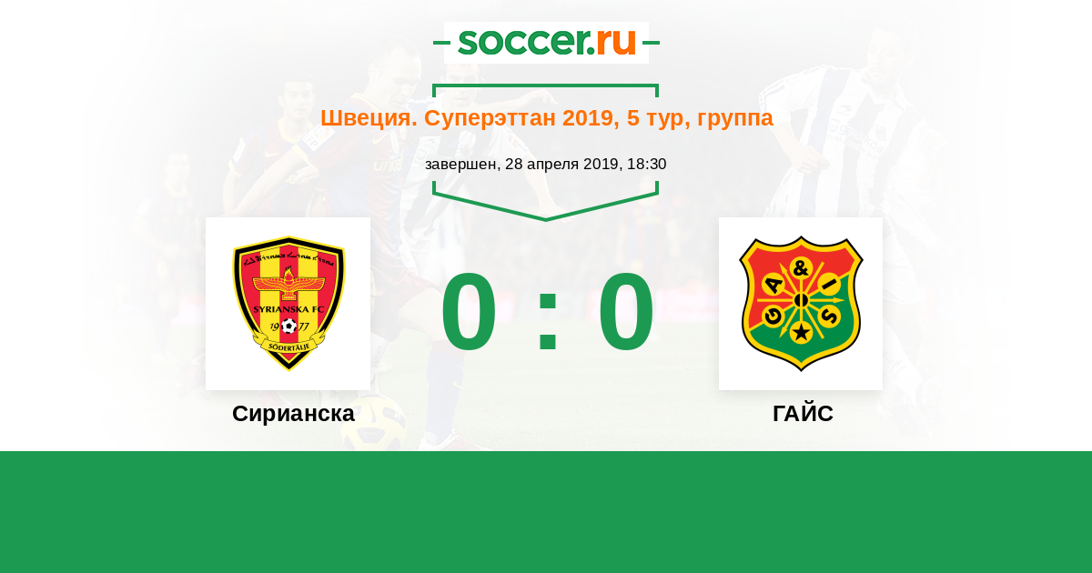 Протокол матча Сирианска против ГАЙС