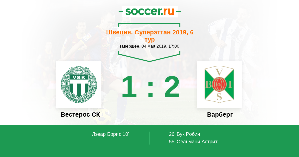 Протокол матча Вестерос СК против Варберг