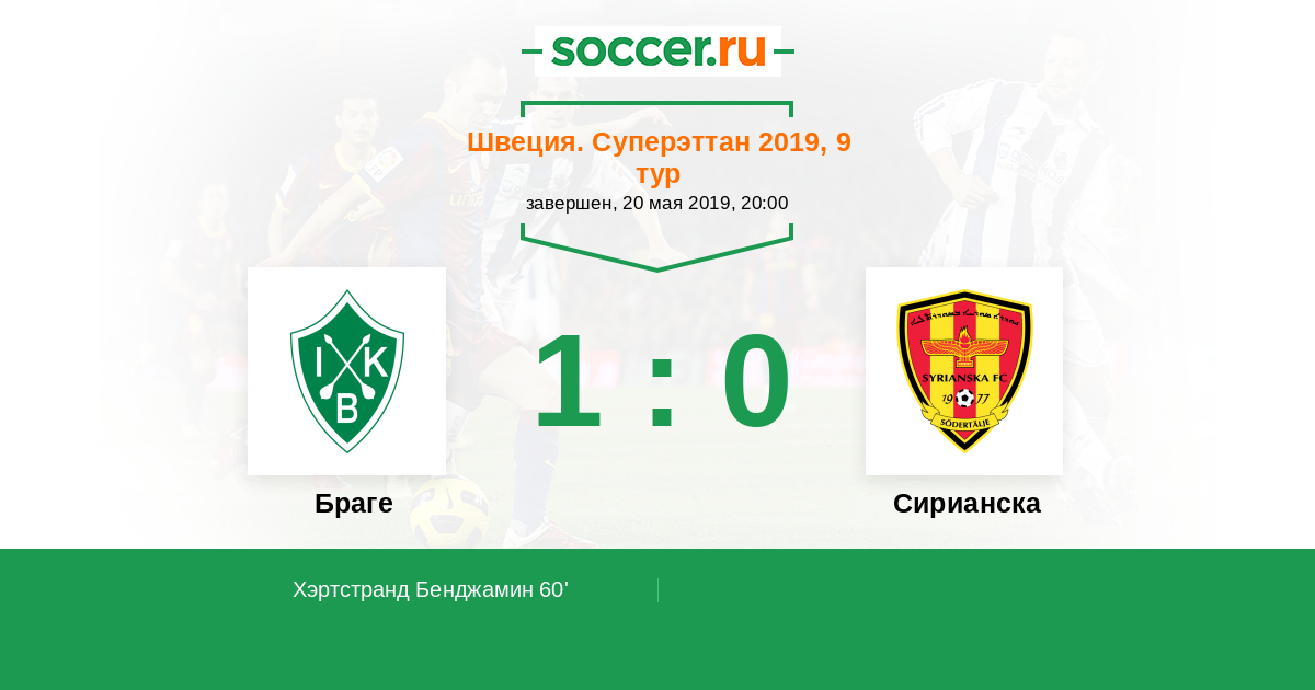 Протокол матча Браге против Сирианска