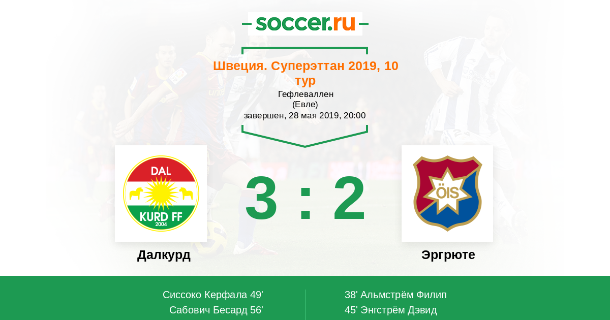 Протокол матча Далкурд против Эргрюте