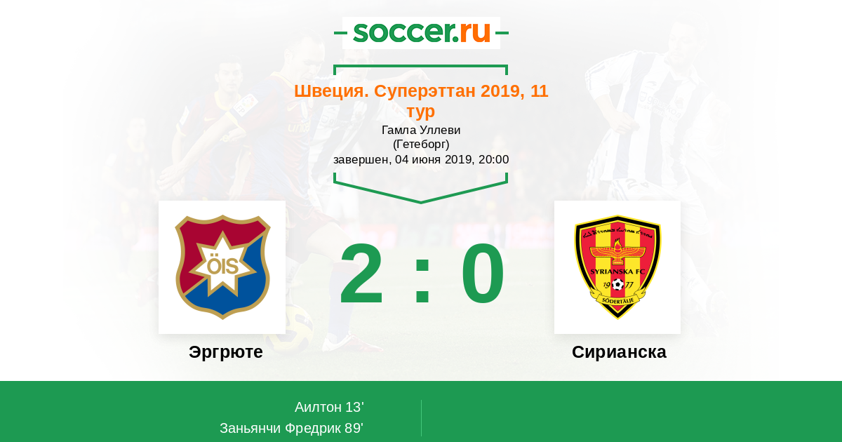 Протокол матча Эргрюте против Сирианска