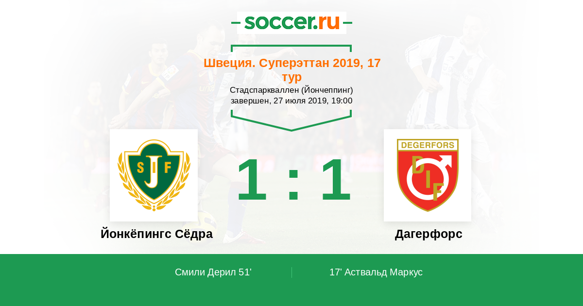 Протокол матча Йонкёпингс Сёдра против Дагерфорс