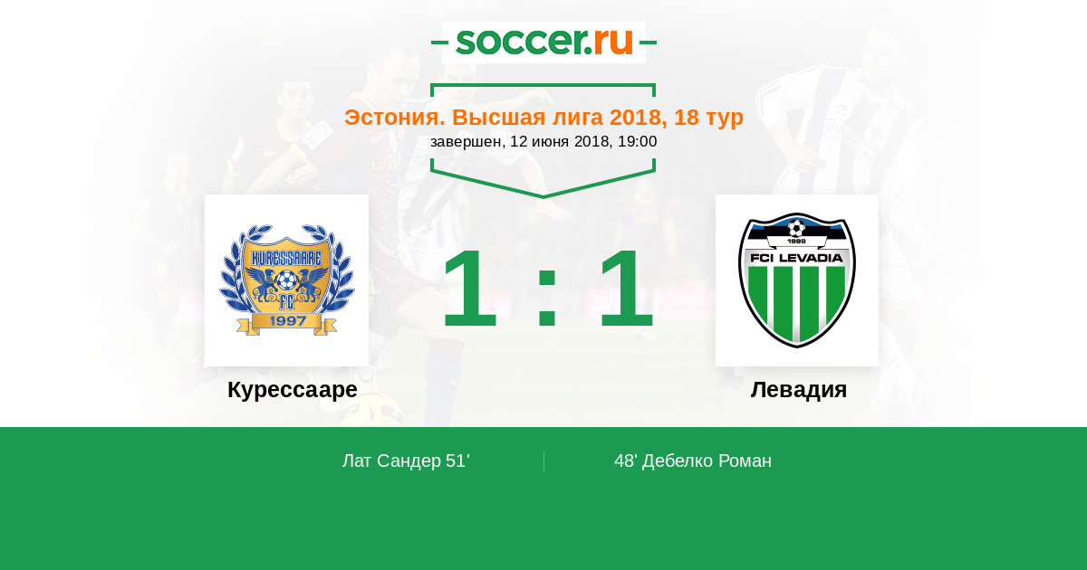 Протокол матча Курессааре против Левадия