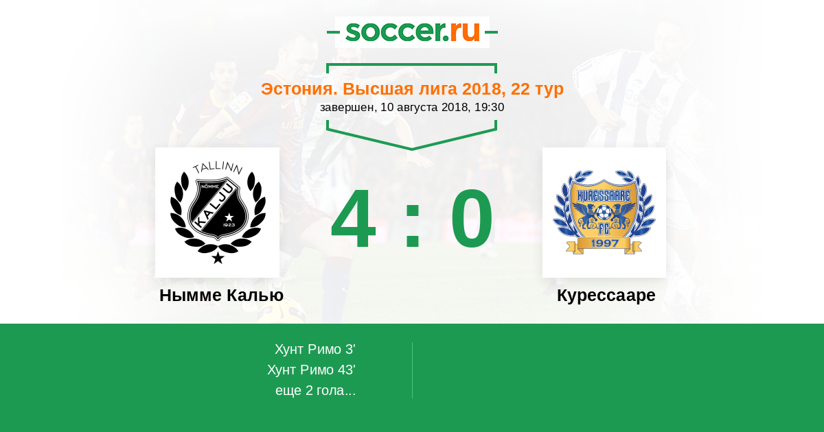 Протокол матча Нымме Калью против Курессааре