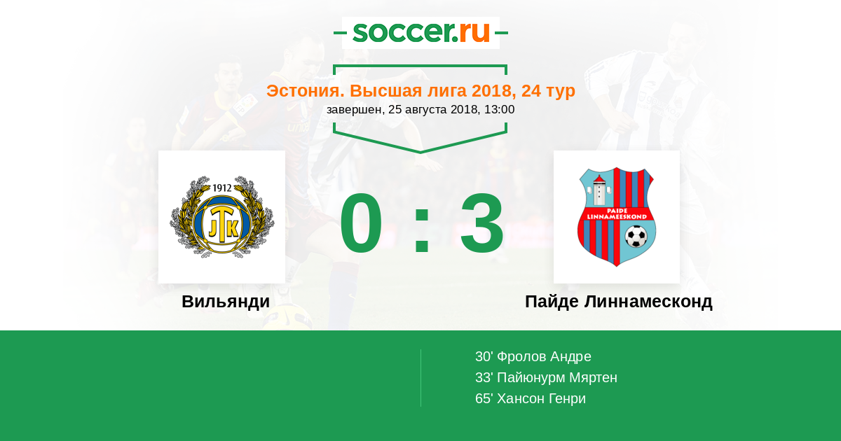 Протокол матча Вильянди против Пайде Линнамесконд