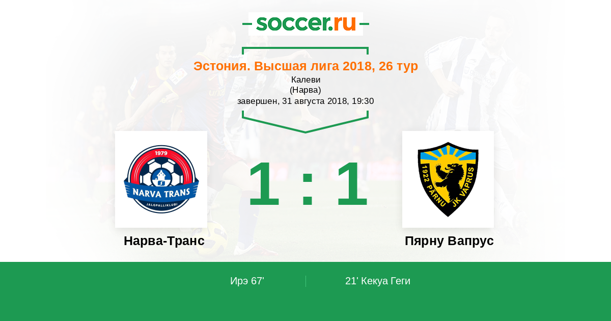 Протокол матча Нарва-Транс против Пярну Вапрус