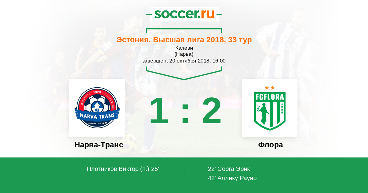 Протокол матча Нарва-Транс против Флора