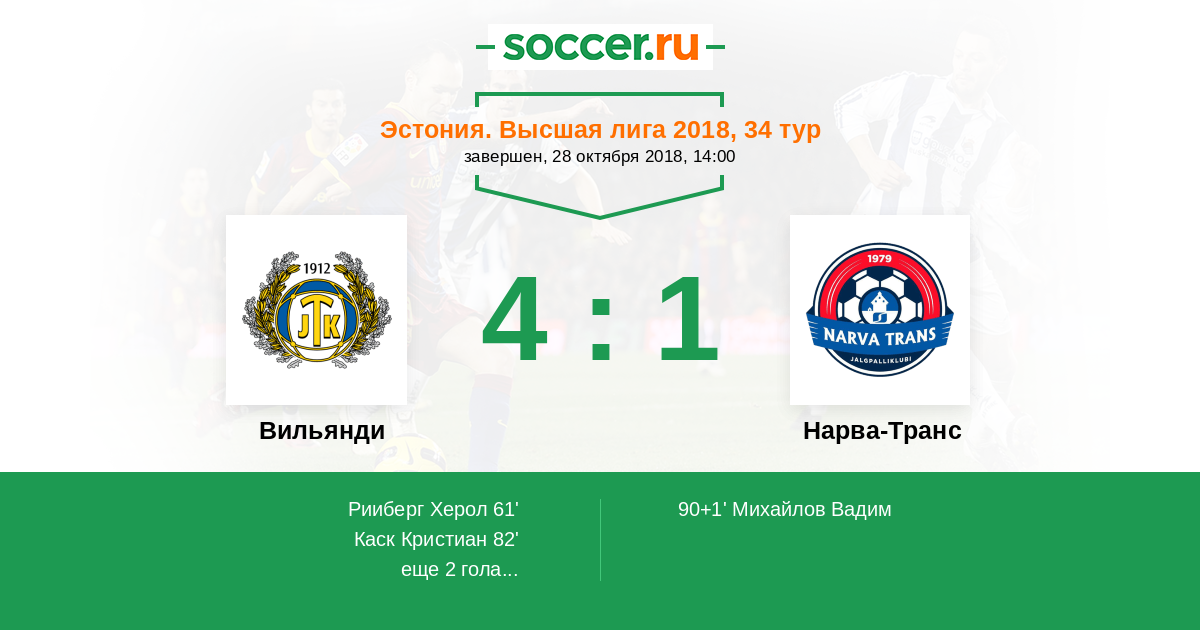 Протокол матча Вильянди против Нарва-Транс
