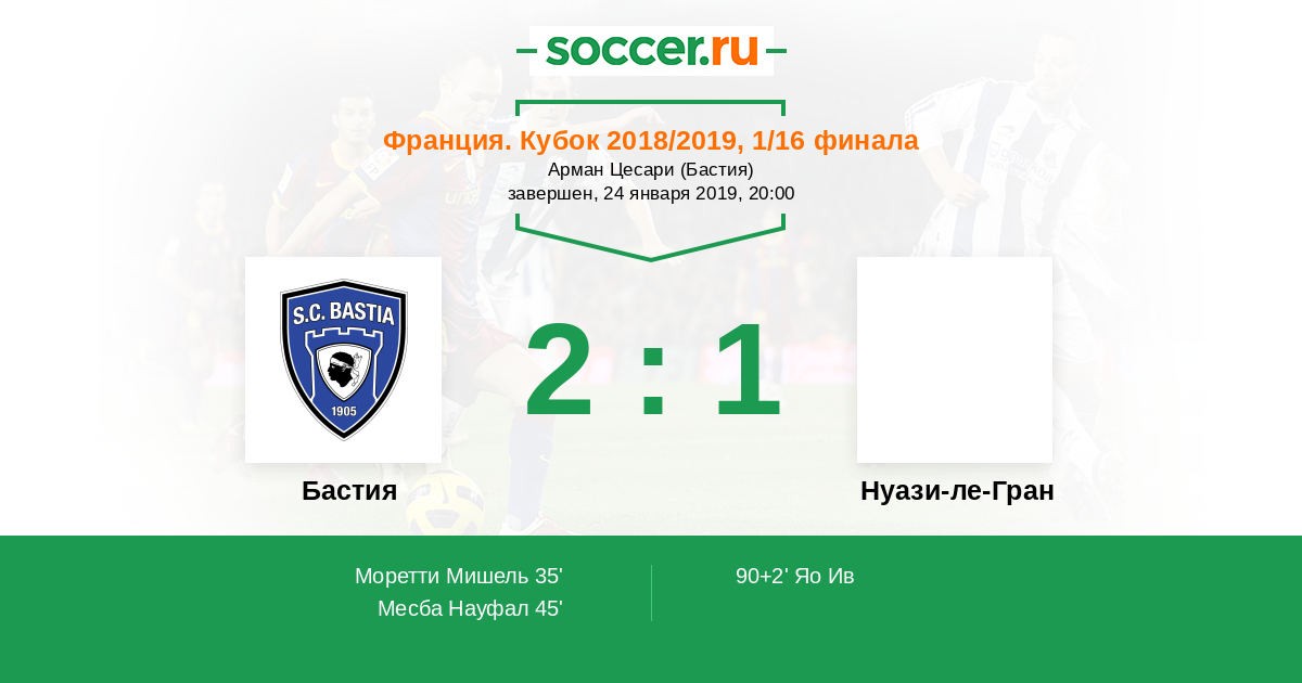 Протокол матча Бастия против Нуази-ле-Гран
