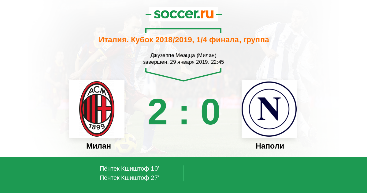 Протокол матча Милан против Наполи