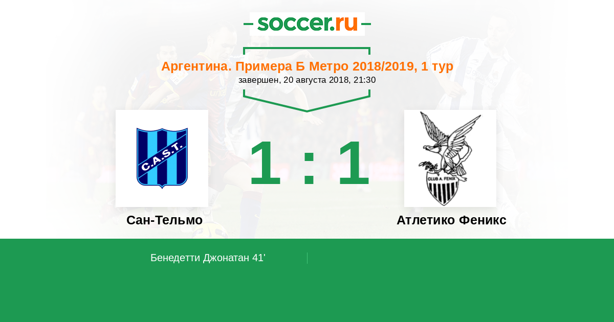 Протокол матча Сан-Тельмо против Атлетико Феникс