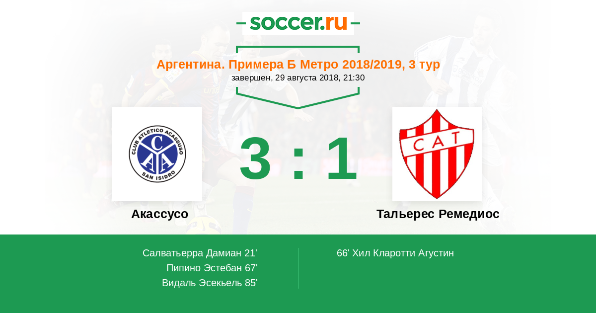 Протокол матча Акассусо против Тальерес Ремедиос