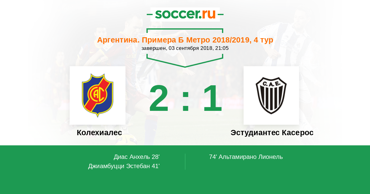 Протокол матча Колехиалес против Эстудиантес Касерос