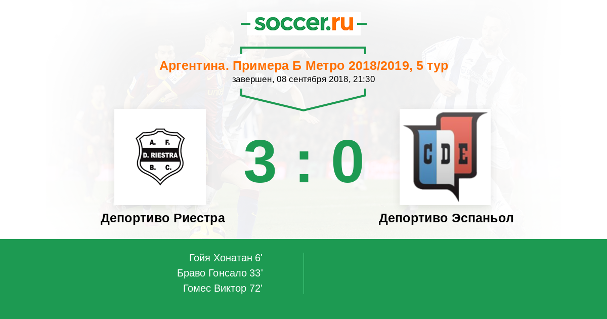 Протокол матча Депортиво Риестра против Депортиво Эспаньол