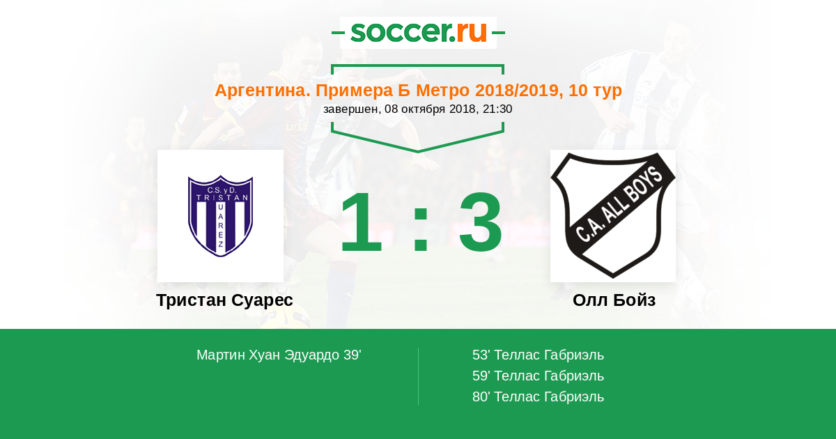 Протокол матча Тристан Суарес против Олл Бойз