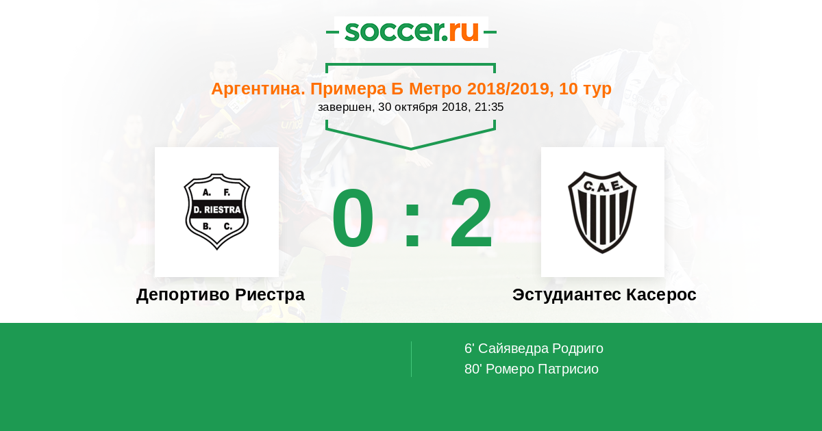 Протокол матча Депортиво Риестра против Эстудиантес Касерос