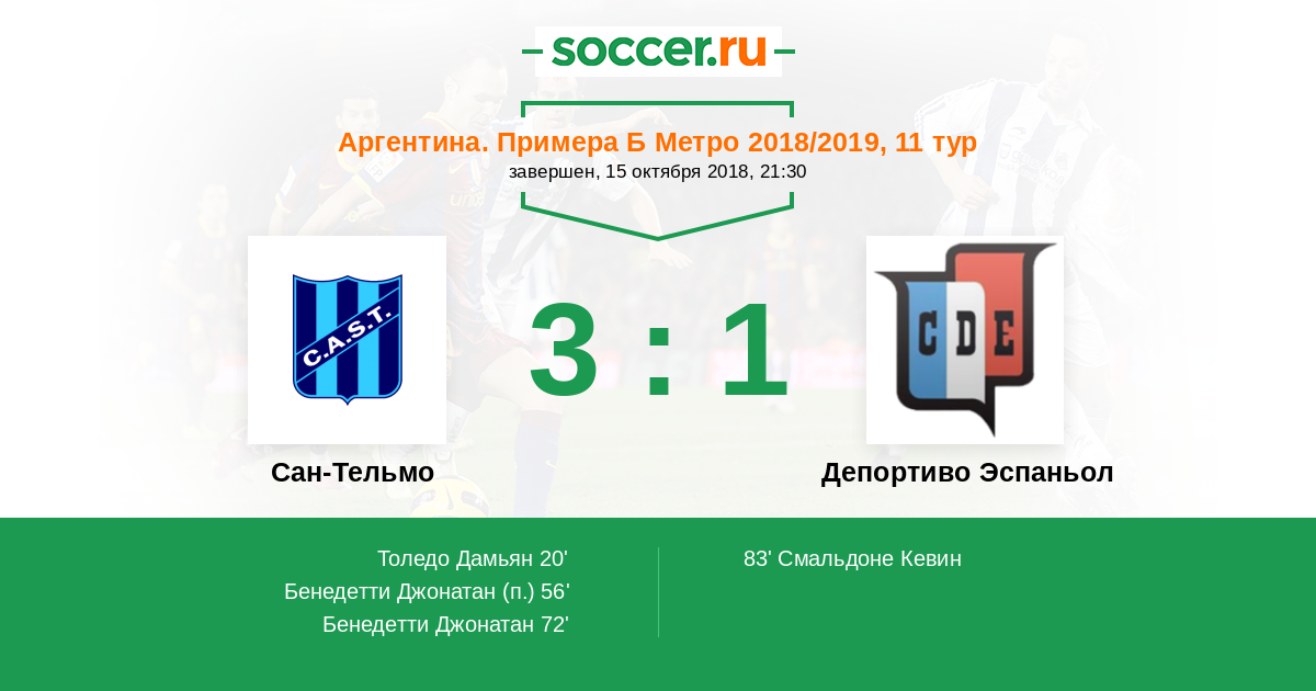 Протокол матча Сан-Тельмо против Депортиво Эспаньол