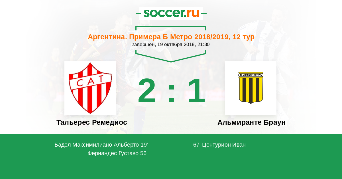 Протокол матча Тальерес Ремедиос против Альмиранте Браун