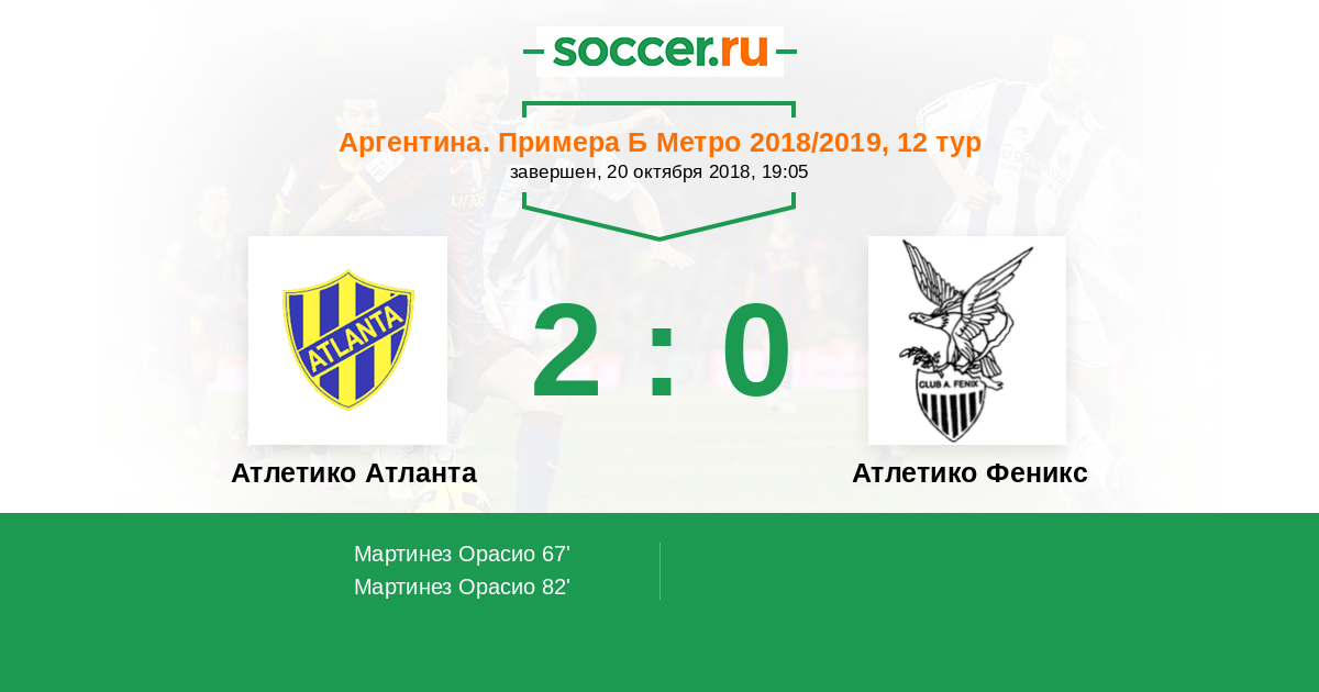 Протокол матча Атлетико Атланта против Атлетико Феникс