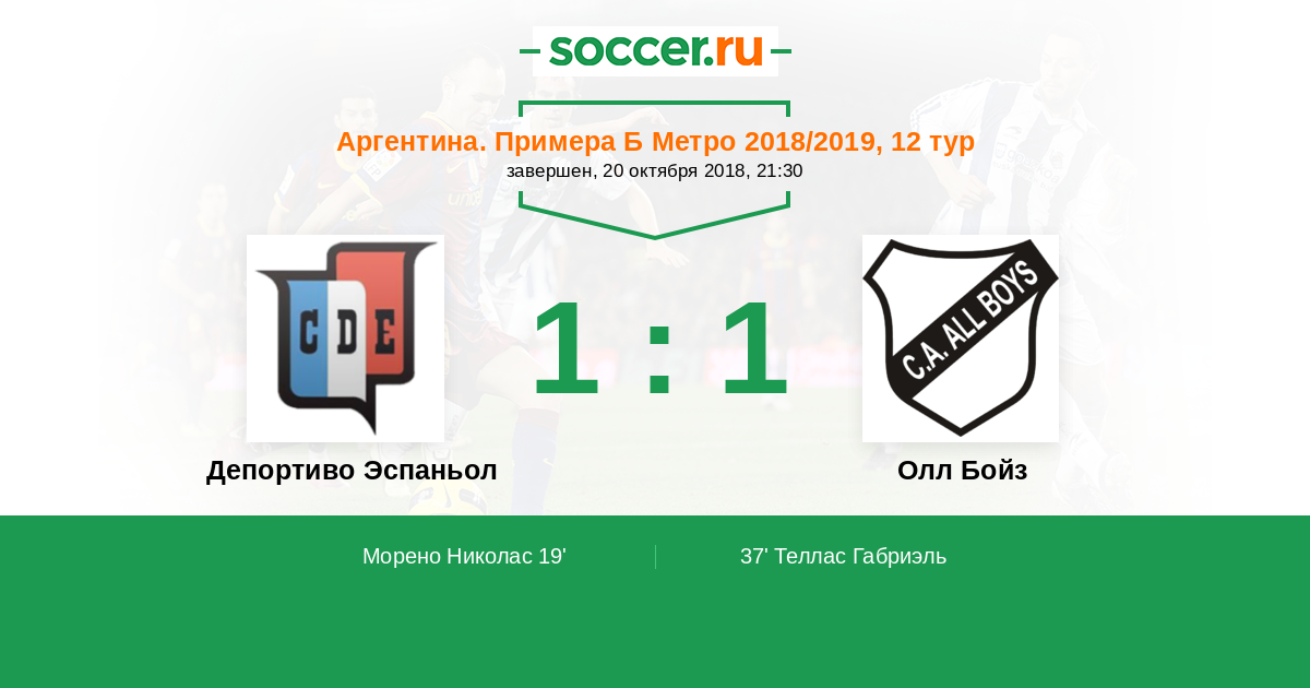 Протокол матча Депортиво Эспаньол против Олл Бойз