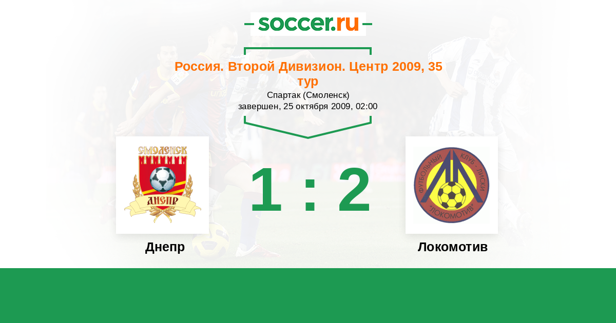 Россия. Вторая лига. Группа 3 22.04.2009 Локомотив Логотип футбольный клуб Локомотив (Лиски) 2:0 Логотип футбольный клуб Днепр (Смоленск) Днепр