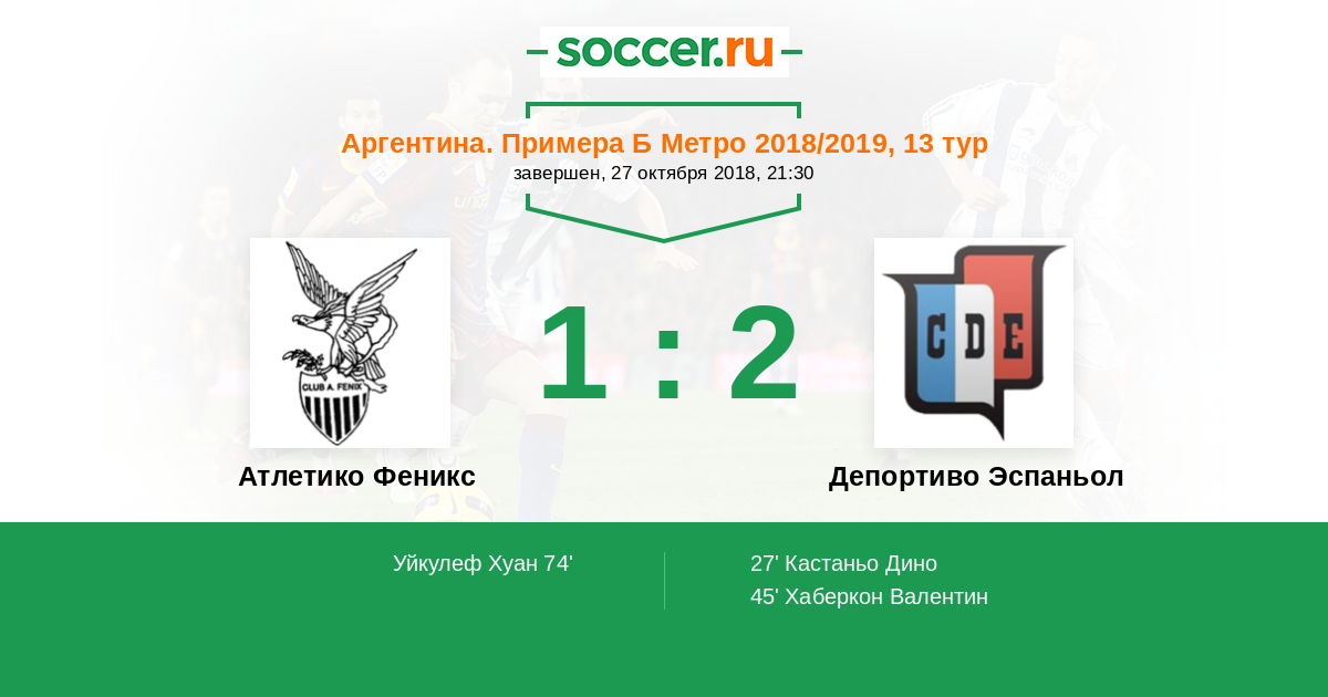 Протокол матча Атлетико Феникс против Депортиво Эспаньол
