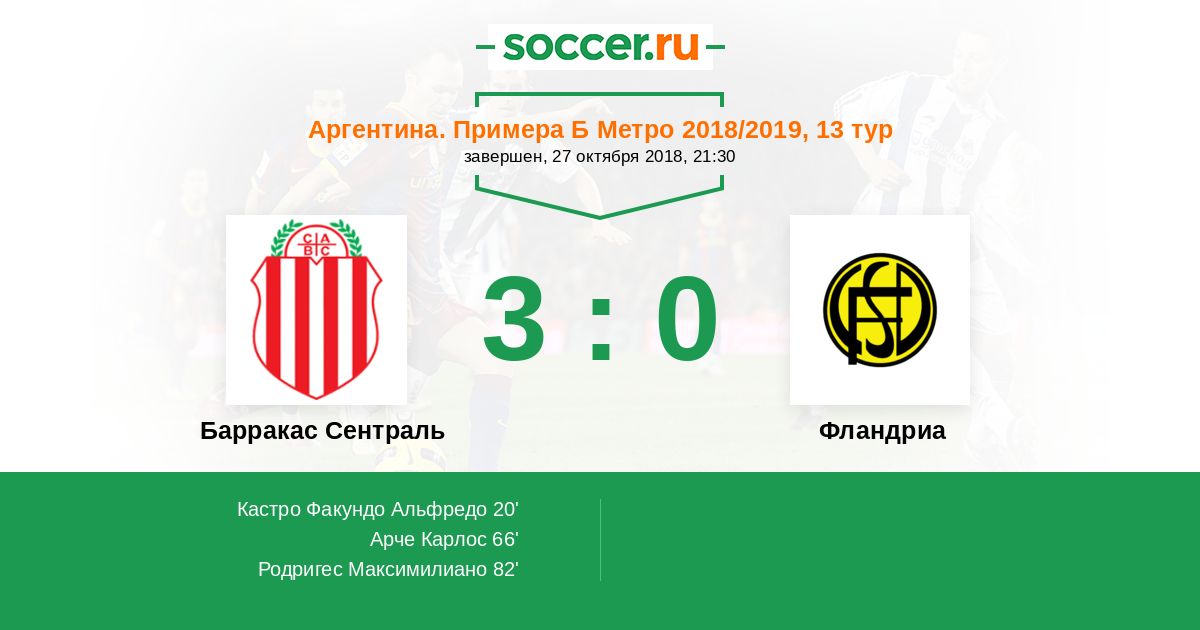 Протокол матча Барракас Сентраль против Фландриа