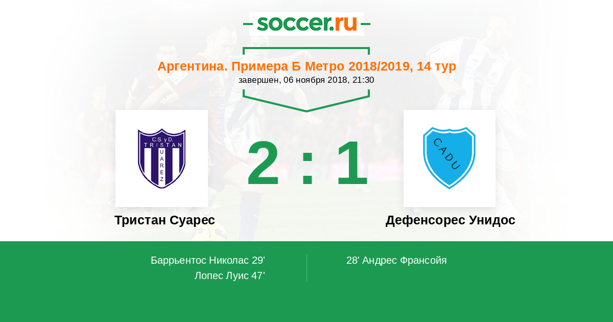 Протокол матча Тристан Суарес против Дефенсорес Унидос