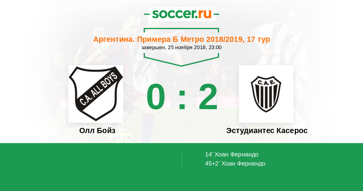 Протокол матча Олл Бойз против Эстудиантес Касерос