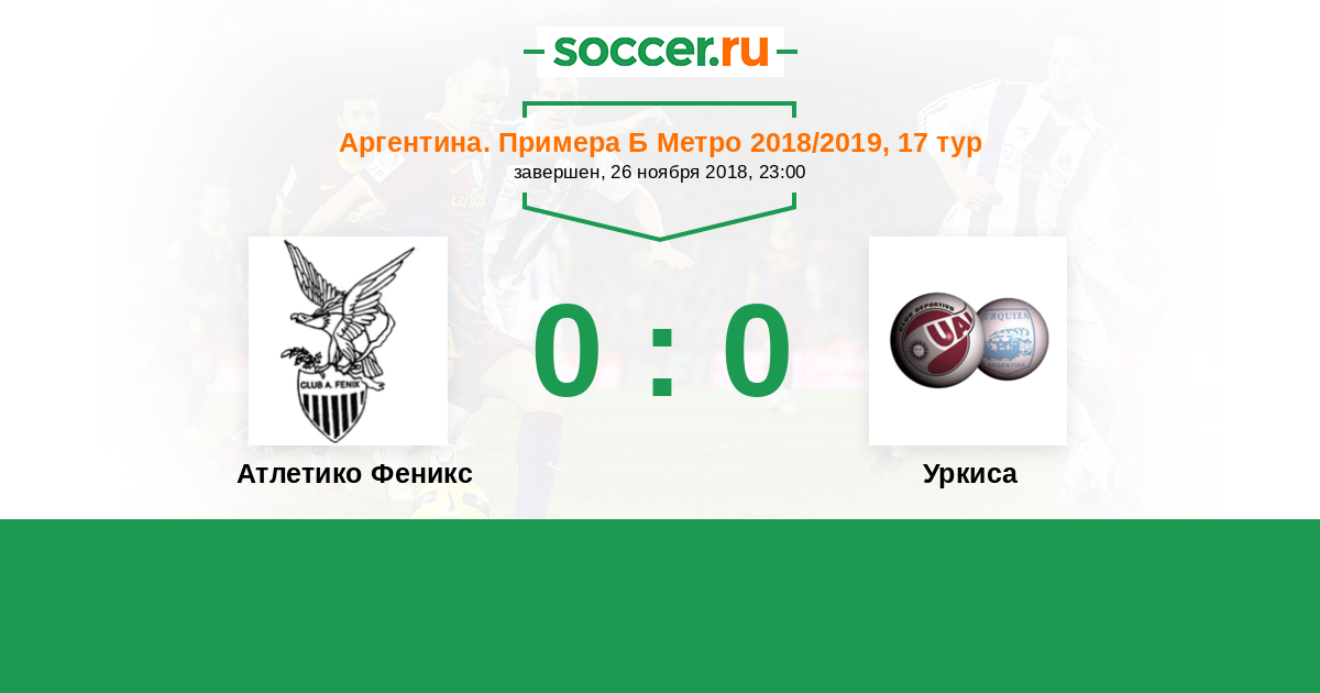 Аргентина. Примера Б Метро 09.03.2018 Атлетико Феникс Логотип футбольный клуб Атлетико Феникс (Пилар) 0:0 Логотип футбольный клуб Уркиса (Вилья Линч) Уркиса