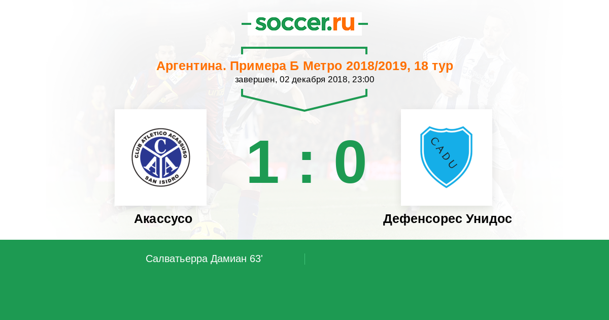 Протокол матча Акассусо против Дефенсорес Унидос