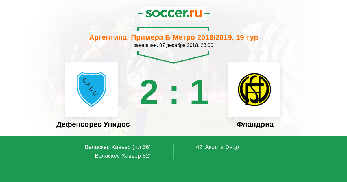 Протокол матча Дефенсорес Унидос против Фландриа