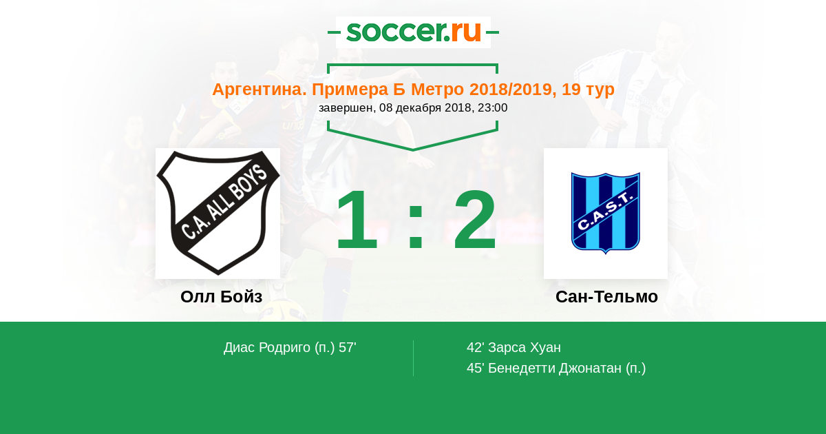 Протокол матча Олл Бойз против Сан-Тельмо