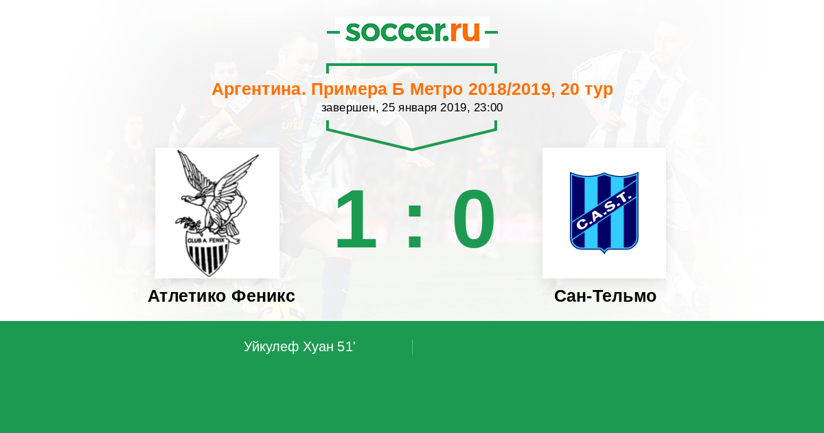 Протокол матча Атлетико Феникс против Сан-Тельмо