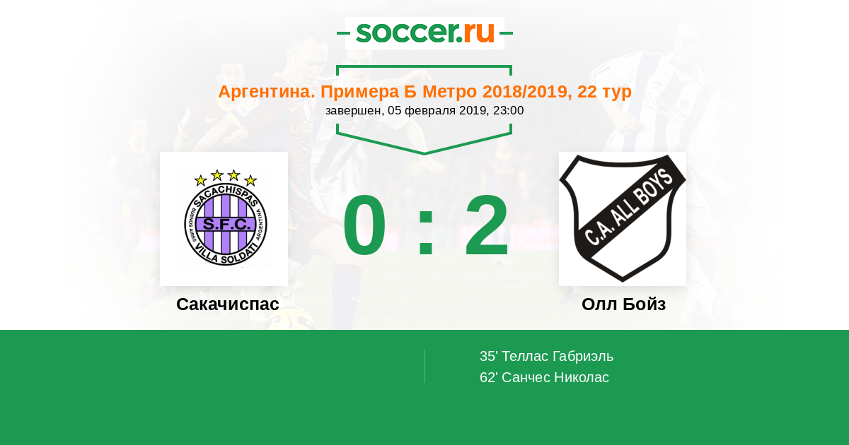 Протокол матча Сакачиспас против Олл Бойз