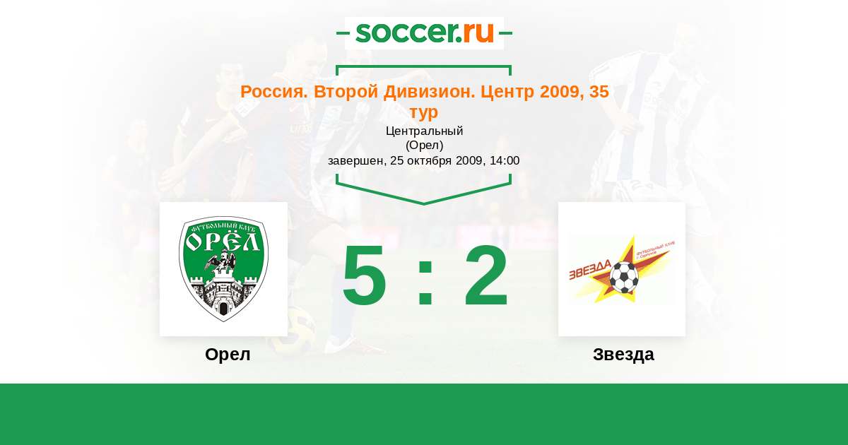 Россия. Вторая лига. Группа 3 25.10.2009 Орел Логотип футбольный клуб Орел 5:2 Логотип футбольный клуб Звезда (Серпухов) Звезда