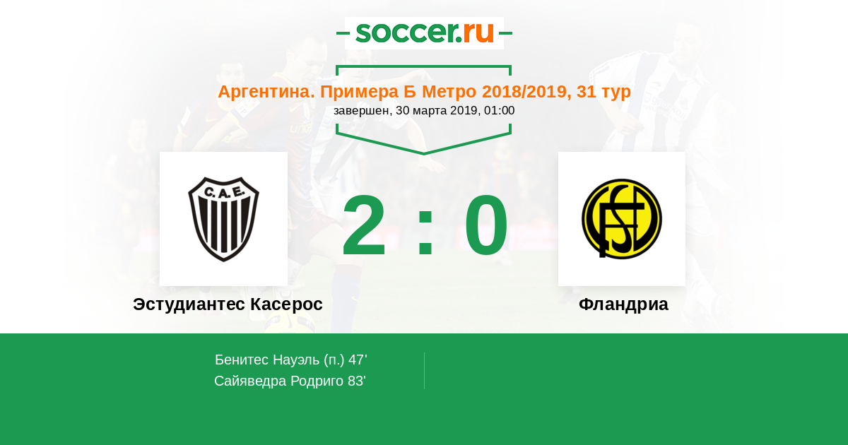 Протокол матча Эстудиантес Касерос против Фландриа