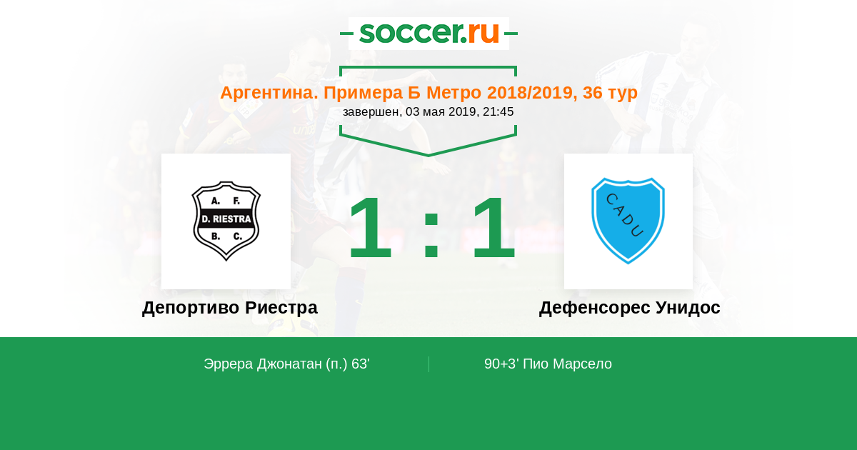 Протокол матча Депортиво Риестра против Дефенсорес Унидос