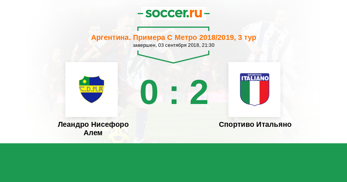 История матча Леандро Нисефоро Алем против Спортиво Итальяно