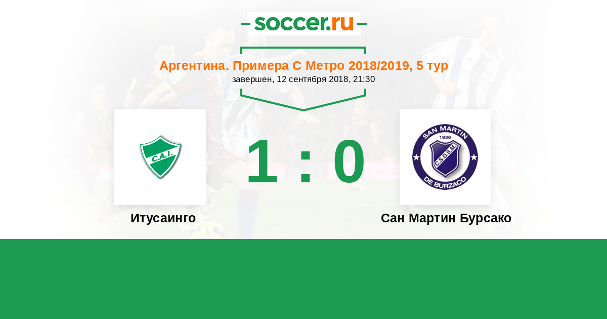 Аргентина. Примера С Метро 21.02.2019 Сан Мартин Бурсако Логотип футбольный клуб Сан Мартин Бурсако 1:0 Логотип футбольный клуб Итусаинго Итусаинго